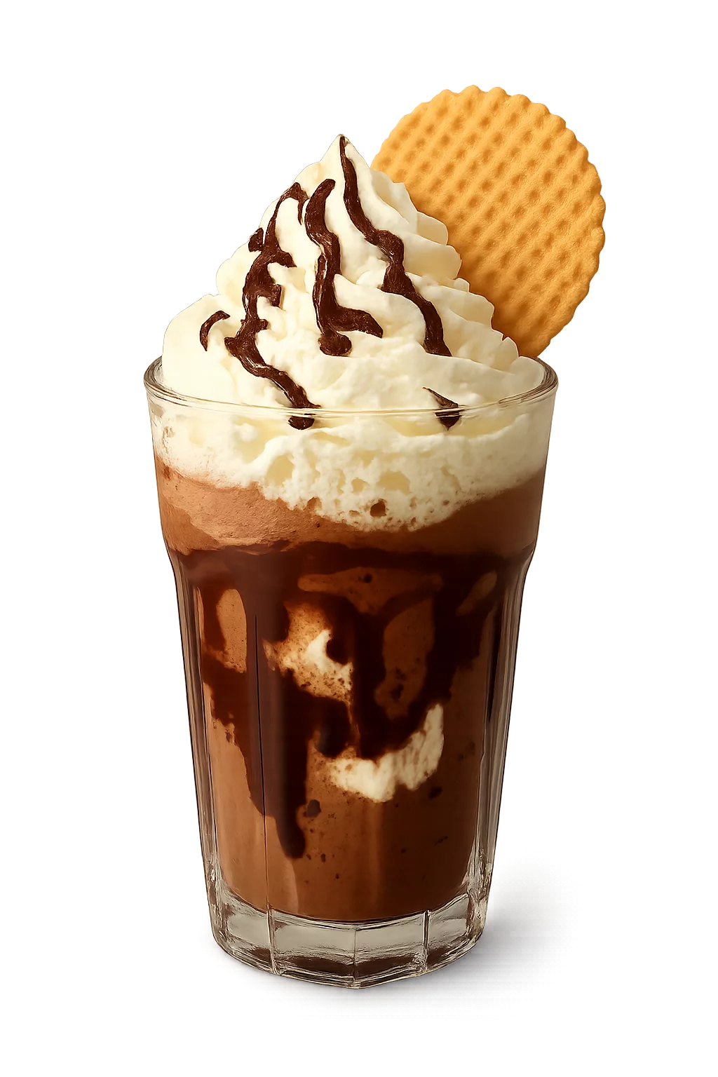 Kalter Schokotraum mit Kugel Eis und Sahne – wie Kakao, nur als Dessert.